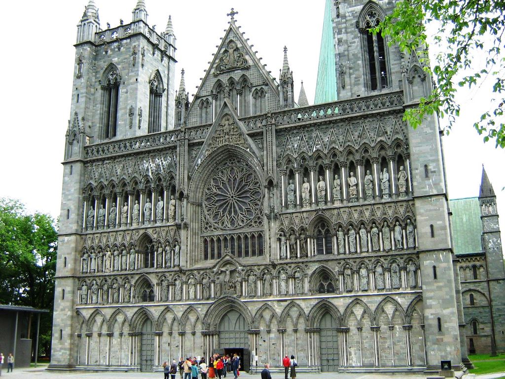Această catedrală uimitoare, construită între anii 1070 – 1300, este cel mai valoros monument gotic din Norvegia și a fost cel mai important loc de pelerinaj creștin din nordul Europei în Evul Mediu. Exteriorul este bogat decorat cu statui ce reprezintă personaje biblice, episcopi locali și regi.